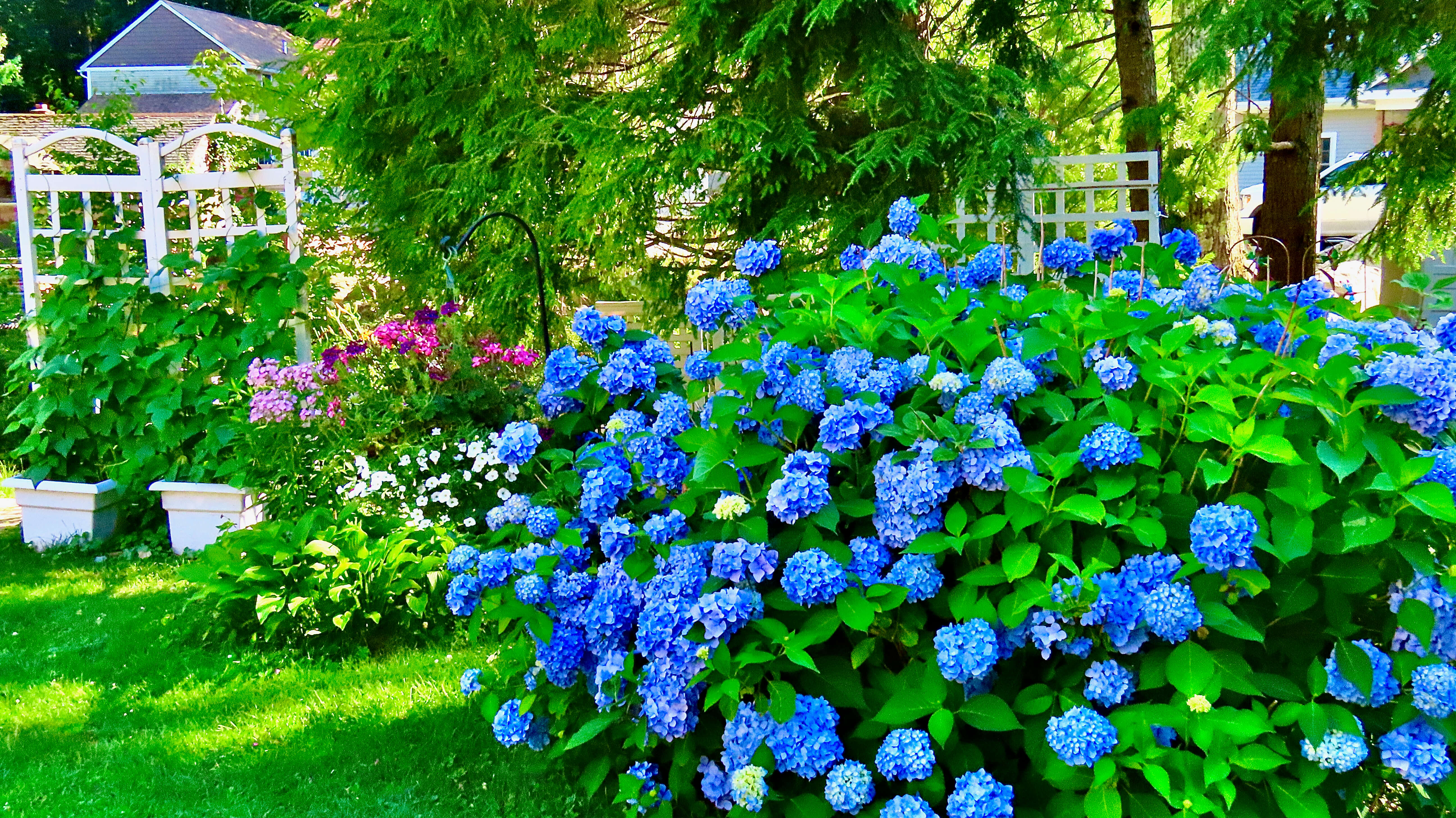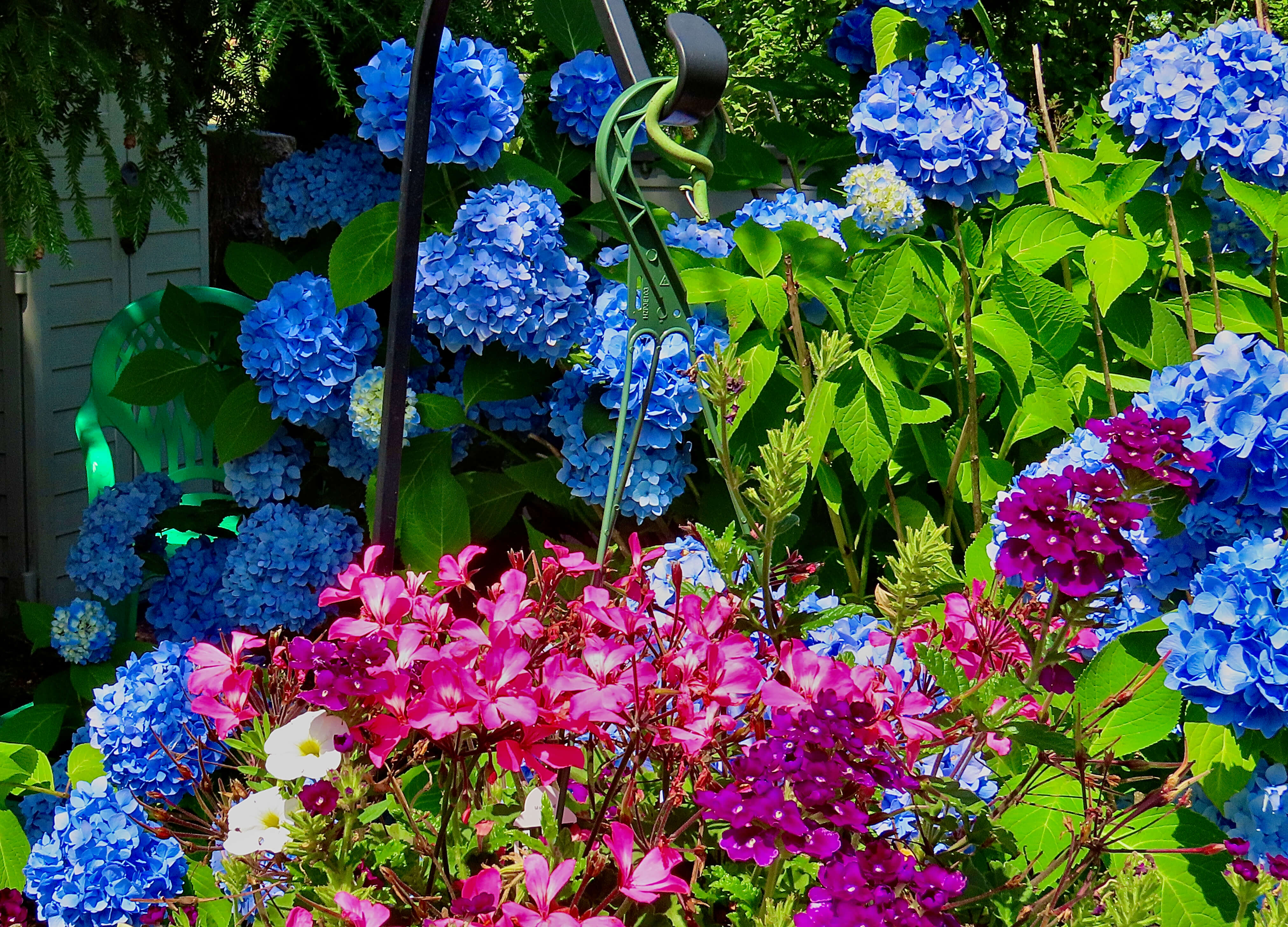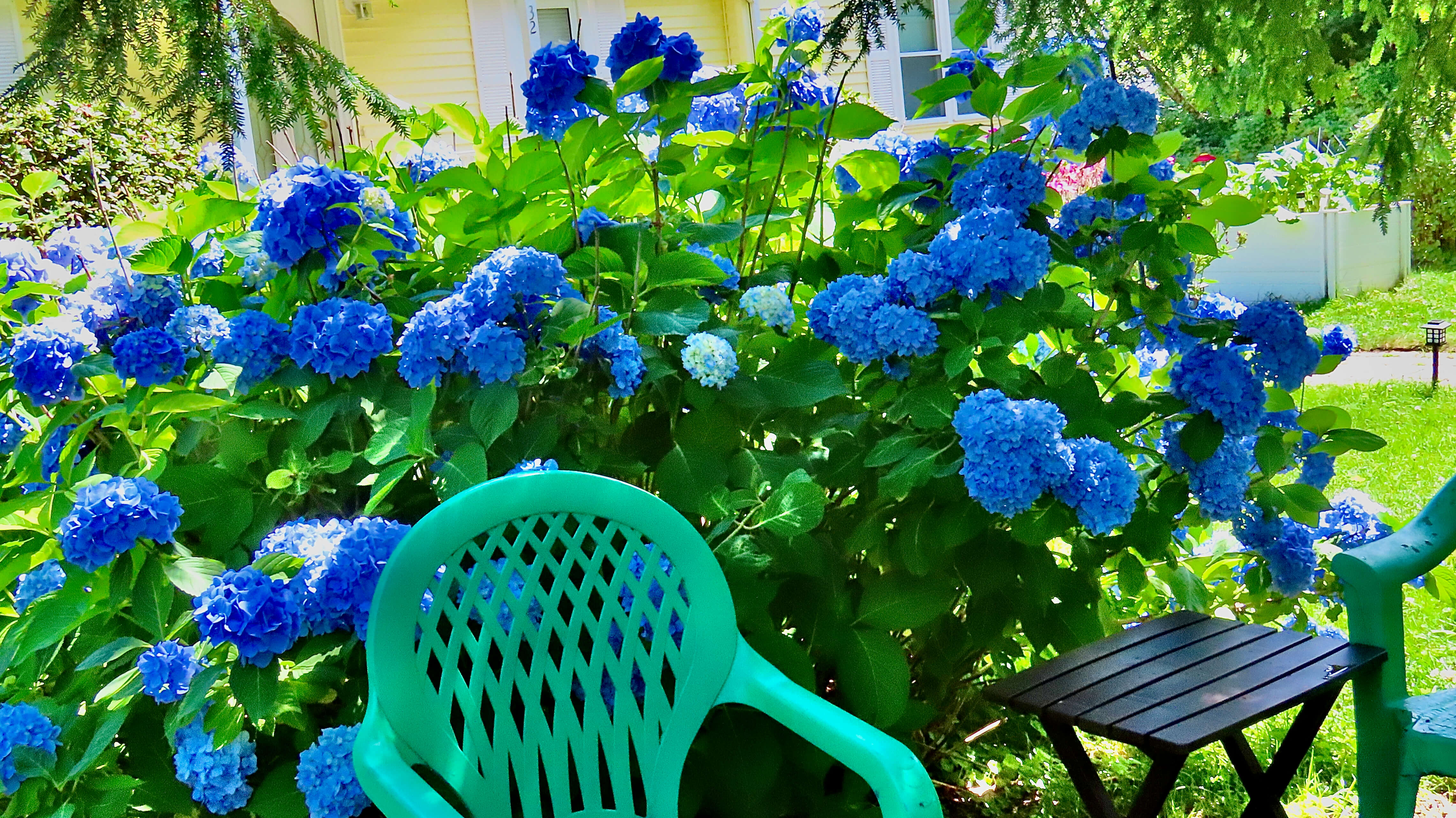 Displays of Mophead Hydrangeas are spectacular in Massachusetts this season, thanks to a mild winter. My bushes, which usually sport a handful of blooms, have been going non-stop for several weeks.
